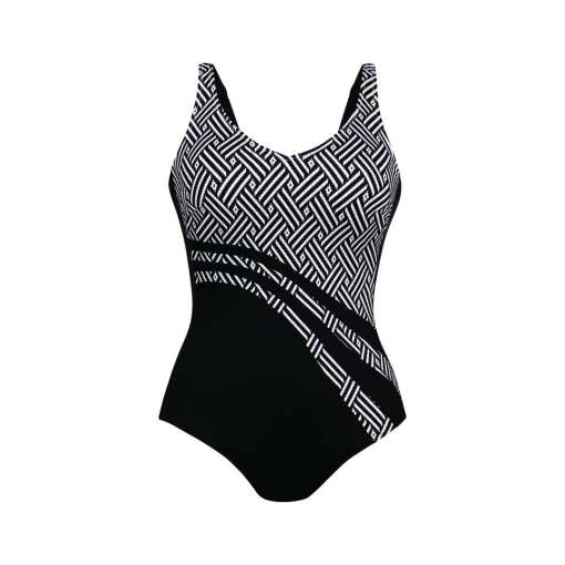 Het ontwerp van het badpak is doordrenkt met elegantie. De gebogen lijnen aan de voorzijde accentueren je taille op een prachtige manier, waardoor je figuur op een flatterende manier wordt benadrukt. Of je nu een ontspannende dag aan het strand doorbrengt of actief deelneemt aan watersporten, met dit badpak voel je je altijd op je best.
