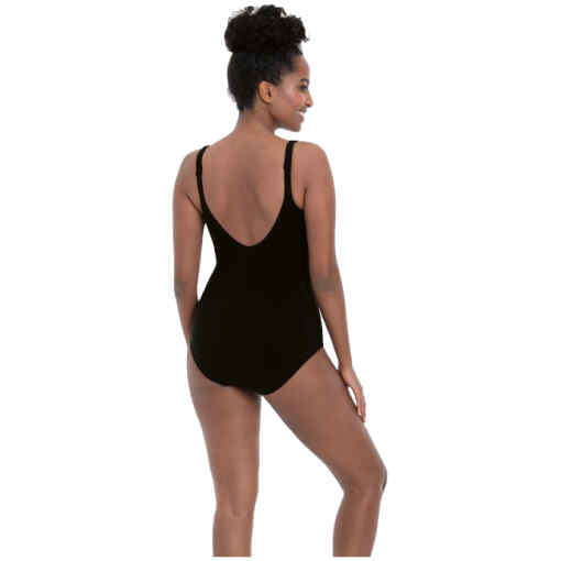 Het badpak sluit hoog van voren, wat niet alleen zorgt voor een flatterende pasvorm, maar ook extra steun biedt. De verstelbare banden maken het gemakkelijk om de perfecte fit voor jouw lichaam te creëren, zodat je je vrij kunt bewegen en volop kunt genieten van je tijd in het zwembad of aan het strand.