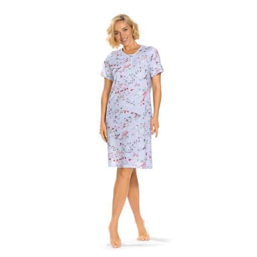 Met korte mouwen en een ronde hals biedt dit nachthemd een ideale pasvorm die zowel elegant als comfortabel is. De knoopsluiting van drie knopen aan de halslijn zorgt niet alleen voor een speelse uitstraling, maar maakt het ook gemakkelijk om aan en uit te trekken.