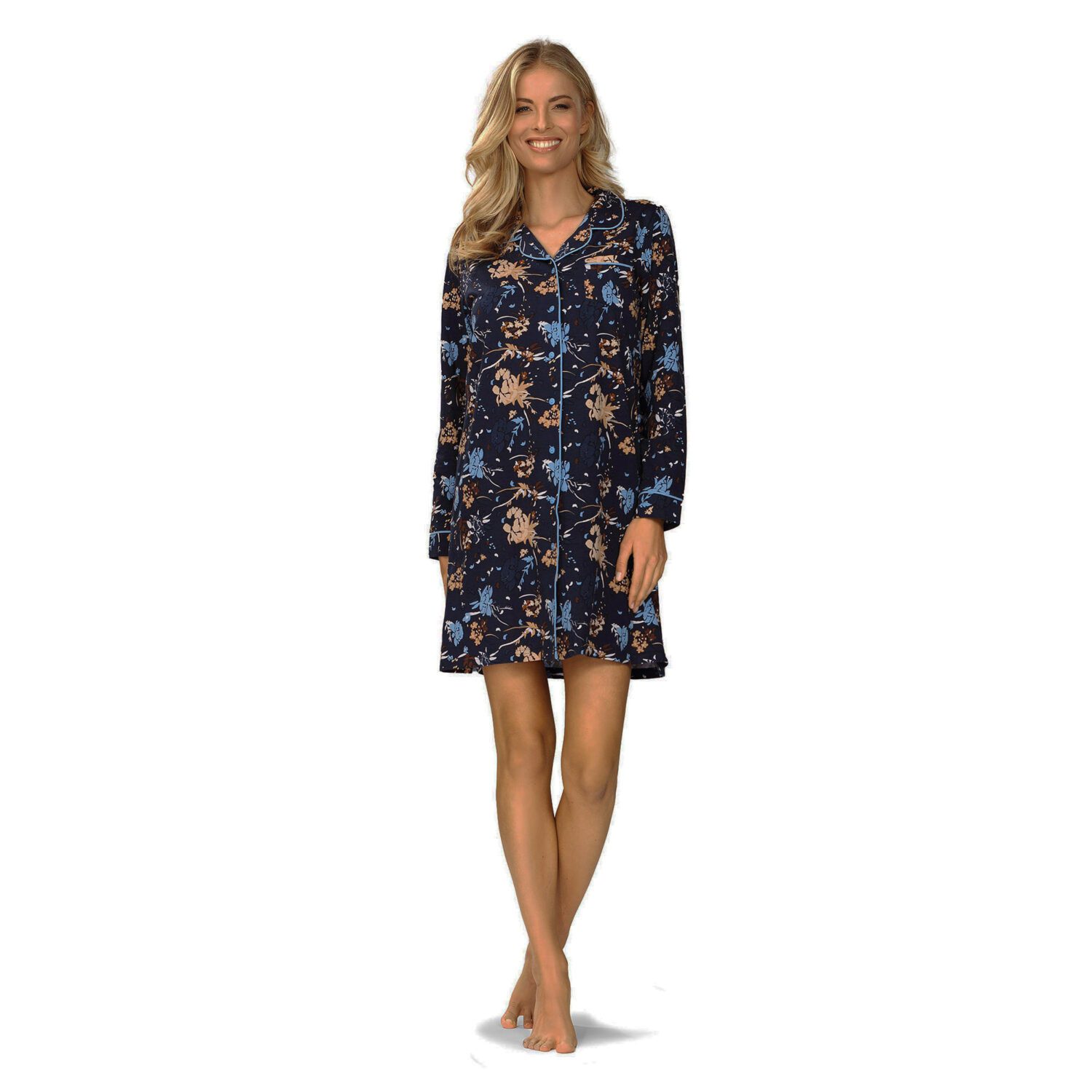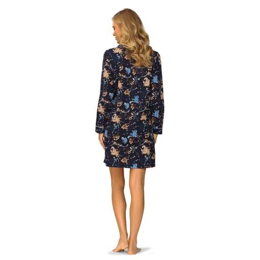 Voel je comfortabel en stijlvol tijdens je nachtrust met het elegante nachthemd van Ascafa. Dit prachtige nachthemd in een diepe donkerblauwe kleur is voorzien van een charmant doorlopend gebloemd patroon dat een vleugje verfijning toevoegt aan je nachtelijke look.