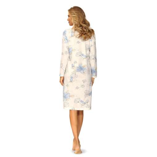 De ecru kleur vormt een prachtig canvas voor het doorlopende, lichtblauwe bloemenpatroon, dat een frisse en natuurlijke uitstraling toevoegt aan uw slaapoutfit. Gemaakt van 100% single jersey katoen, voelt dit nachthemd zijdezacht aan op de huid en biedt het optimaal draagcomfort. Met een elegante lengte van 105 cm is het nachthemd niet alleen stijlvol, maar ook praktisch en comfortabel om te dragen. Voeg dit prachtige nachthemd toe aan uw collectie en ervaar de luxe van de Natural Lightness collectie!