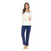 Een stijlvol dames pyjama van het merk Ascafa uit de Lovely Hearts collectie. De wit gekleurde top met een blauw doorlopend hartjes patroon heeft lange mouwen. De ronde hals heeft een knoopsluiting van 3 knopen en is stijlvol met een donker blauw boord afgewerkt. De effen donkerblauwe broek heeft een elastische taille. Gemaakt van 50% single jersey katoen en 50% modal!