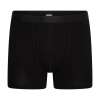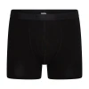 Boxershort van elastische single jersey met opening. De taille van deze boxer is afgewerkt met een elastische tekstband en de pijpen zijn omgezoomd. In de kleuren Wit, Zwart en Marine.