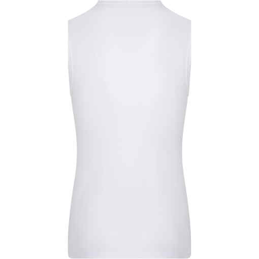 De hals en armgaten zijn elegant afgewerkt met een boord, wat niet alleen zorgt voor een nette afwerking, maar ook bijdraagt aan de duurzaamheid van het kledingstuk. Het ontwerp zonder mouwen maakt het ideaal voor warmere dagen en biedt volop bewegingsvrijheid.