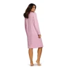 De ronde hals heeft een praktische knoopsluiting met drie knopen, fraai afgewerkt met een bijpassende roze boord. Met een lengte van 105 cm is dit nachthemd ideaal voor een comfortabele pasvorm die u warm houdt, zowel in bed als tijdens uw avondroutine. Bereid u voor op de koudere nachten en geniet van de luxe en stijl van dit fijne nachthemd!