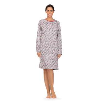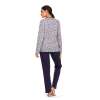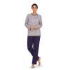 Met deze pyjama van Comtessa uit de ‘Snow Time’ collectie krijgt u het niet meer koud met de frissere nachten. Deze pyjama met lange mouwen is gemaakt van een dikke katoenen interlock kwaliteit wat er voor zorgt dat dit extra warmte biedt. De top heeft een ronde hals met een knoopsluiting van 3 knopen en is met een donker blauwe boord afgewerkt. Verder heeft de grijs gekleurde top een sierlijk sneeuwvlokken patroon. De effen donker blauwe broek heeft een elastische rand in de taille. Zo bent u klaar voor de koudere nachten!