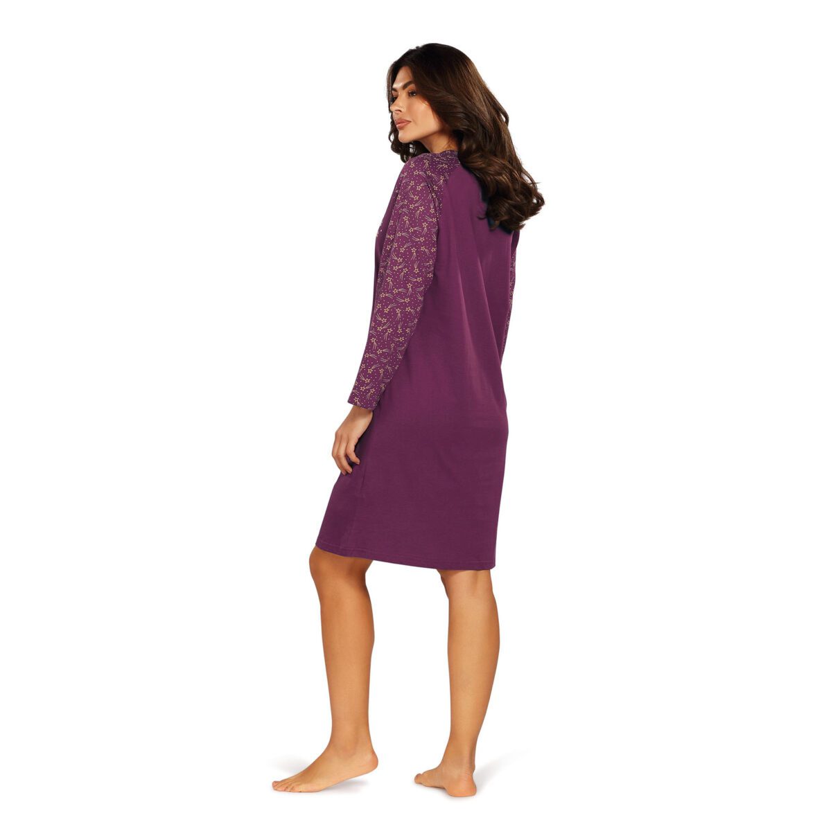 Ontspan in stijl met het prachtige plum gekleurde dames nachthemd van Comtessa. Dit elegante nachthemd combineert comfort met een speelse uitstraling, perfect voor een goede nachtrust of een luie dag thuis. Het nachthemd is ontworpen met lange mouwen die versierd zijn met een subtiel maar schitterend goudkleurig sterrenpatroon, waardoor het een verfijnde en dromerige look krijgt. De ronde hals is praktisch en stijlvol, met een knoopsluiting van vier knopen die het aan- en uittrekken vergemakkelijkt.
