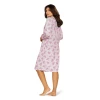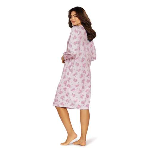 Een klassiek dames nachthemd van het merk Comtessa. Het roze gekleurde nachthemd heeft een sierlijk doorlopend gebloemd patroon. De ronde hals heeft een knoopsluiting van 4 knopen die met een brede boord is afgewerkt. De uiteindes van de lange mouwen van dit nachthemd hebben een knoopsluiting. Het is gemaakt van 100% single jersey katoen en heeft een lengte van 110cm.