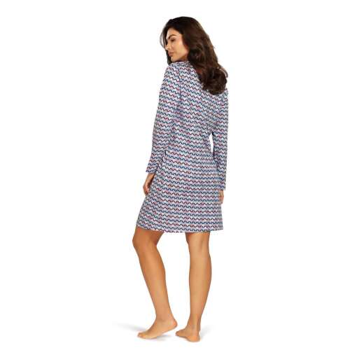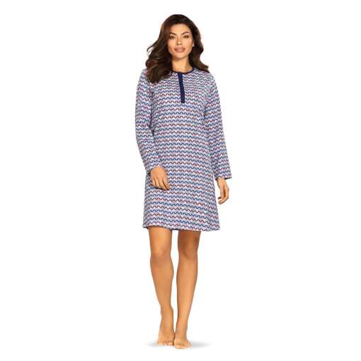 Een dames nachthemd van Comtessa uit de ‘Winter Graphics’ collectie met lange mouwen. Het nachthemd heeft een ronde hals met een knoopsluiting van 4 knopen die is afgewerkt met een blauw gekleurde boord. Door het doorlopende stijlvol gekleurde ruit patroon heeft dit nachthemd een frisse uitstraling. Gemaakt van 100% katoen en een lengte van 95cm. Met dit nachthemd ben je klaar voor een goede nachtrust!