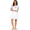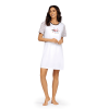 Een Comtessa nachthemd gemaakt van 100% katoen uit de ‘Woof’ collectie. Het wit gekleurde nachthemd heeft op de borst een afbeelding van een hond met ‘woof’ er onder. De ronde hals is stijlvol afgewerkt met een zwarte bies. Verder heeft het nachthemd korte mouwen met een doorlopend gestreept patroon. De lengte van dit nachthemd is 90cm.