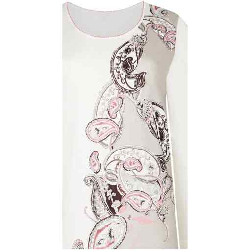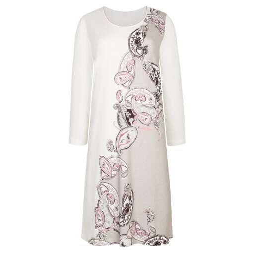 Dit sierlijke dames nachthemd van het merk Cybèle heeft lange mouwen. Het nachthemd heeft een ronde hals zonder knoopsluiting en is afgewerkt met een bies. Dit licht gekleurde nachthemd heeft aan de voorkant een stijlvol grafisch bloemen patroon. Verder is het gemaakt van 100% gekamde katoen waardoor het een optimaal draagcomfort geeft. De lengte van dit nachthemd is 95cm.