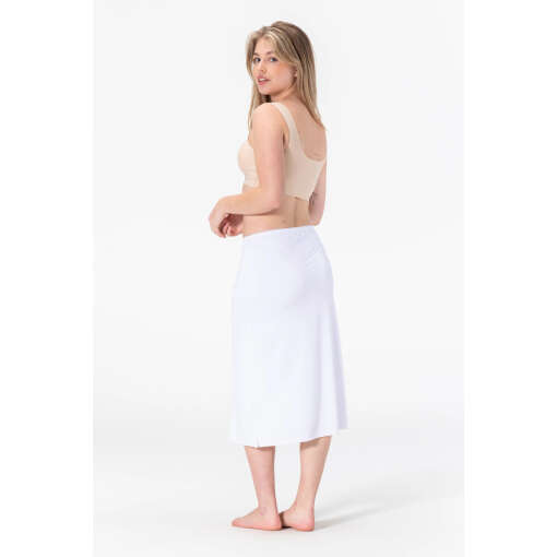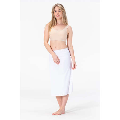 De lange lengte met split geeft je extra bewegingsvrijheid en een elegante uitstraling onder al je jurken en rokken. Materiaal samenstelling: 85% Polyamide, 15% Elastaan. Voeg deze veelzijdige onderrok toe aan je garderobe voor een strakke, verzorgde look en optimaal comfort gedurende de hele dag!