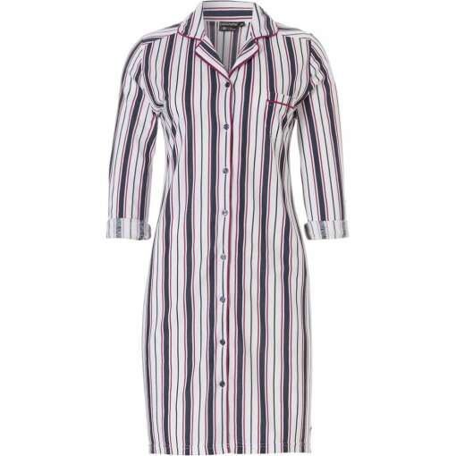 Dit stijlvolle dames nachthemd van Pastunette Deluxe heeft lange mouwen die door middel van mouwophouders lang of driekwart gedragen kan worden. Verder is dit blauw-wit-rood gestreepte doorknoop nachthemd afgewerkt met een rode bies en heeft het een borstzakje. De lengte van dit nachthemd is 95cm. Door de fijne samenstelling van stoffen geeft dit extra veel draagcomfort!