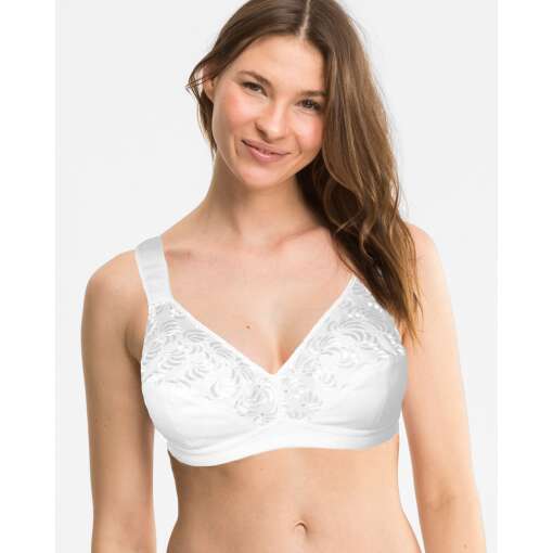 Deze Speidel bh met kant heeft geen beugel maar wel een belijning aan de zijkant. Door de brede banden en het hoge aandeel katoen geeft dat de bh een zeer fijne draagcomfort. De cup van dit model valt iets groter uit!