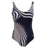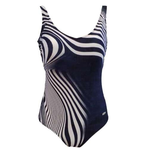 Dit donker blauw badpak van Susa uit de ‘Blue Waves’ collectie heeft een wit zebra patroon. Het badpak heeft een v-hals en de benen hebben een normale snijding. Verder is het voorzien van een buikvoering en heeft het zachte cups. De rug heeft een hoge ronde uitsnijding en is ook voorzien van verstelbare banden!