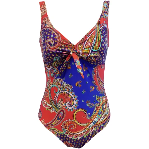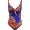 Loop stijlvol het water in met dit sierlijk rood gekleurde badpak van Susa uit de ‘Royal Night’ collectie. Dit model met grafisch doorlopend patroon heeft een v-hals die is afgewerkt met een knoop. De benen hebben een normale snijding. Verder is het voorzien van een buik en rugvoering en heeft het zachte cups. De rug heeft een ronde uitsnijding en is ook voorzien van verstelbare banden!