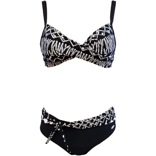 Deze stijlvolle bikini met gestreept patroon van Susa komt uit de ‘Black & White’ collectie. De voorgevormde top heeft een zachte ondersteuning zonder beugel en is voorzien van verstelbare banden. Het brede zwarte broekje heeft aan de voorkant een fraaie knoop met gestreept patroon. Ook is het broekje van voren gevoerd. Deze bikini met perfecte pasvorm is ideaal voor de zomerse momenten!